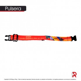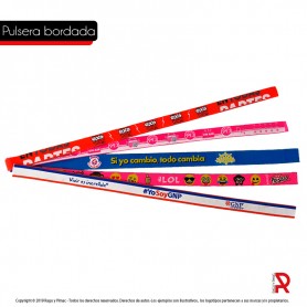 Pulsera fabricada en listón de 11/12 mm x 28 cm con impresión en sublimación a 1 cara con puntas termo selladas.